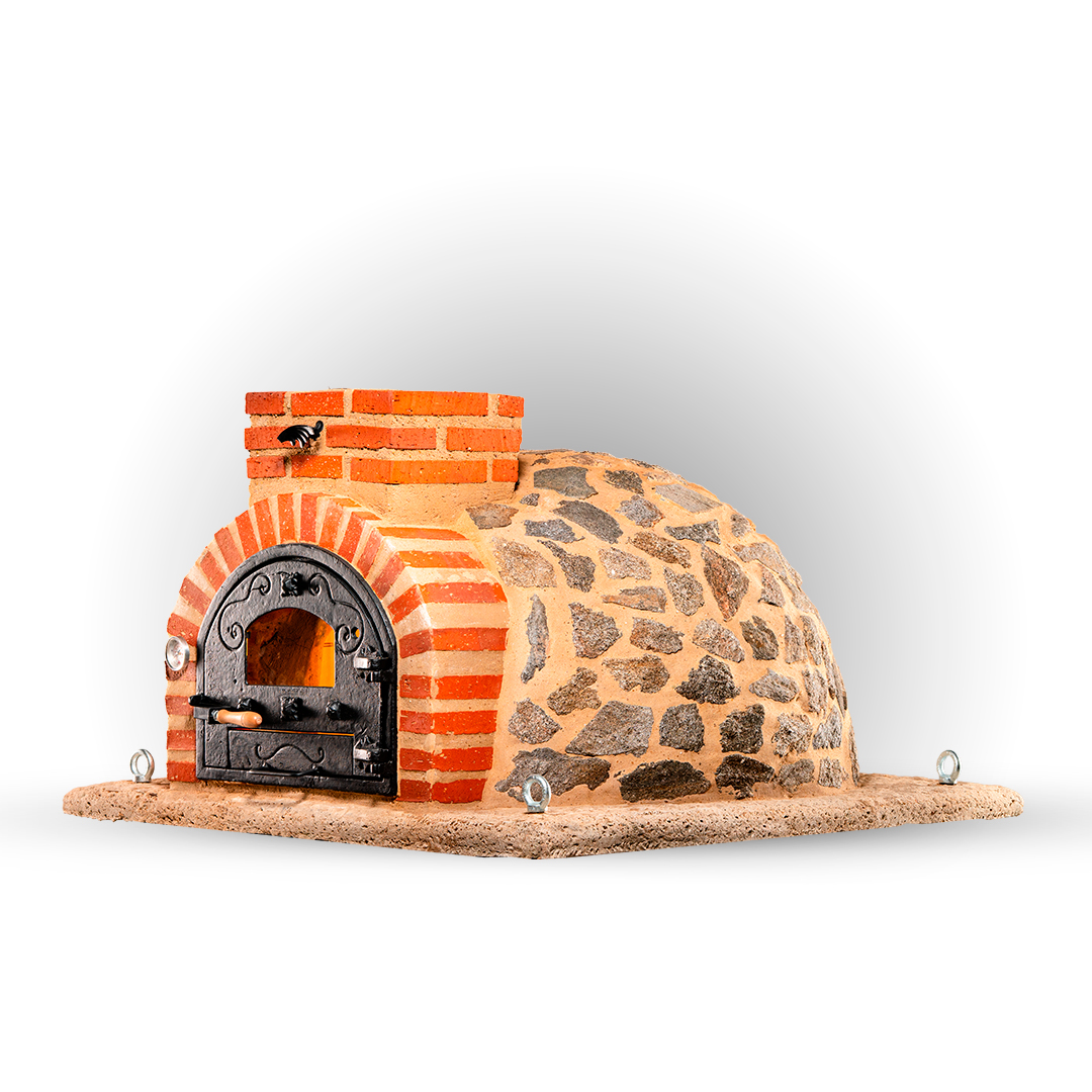 - We start the manufacturing of the oven on a vibrated concrete base on vibrating tables containing rebar, concrete and fiber. The materials used for the subsequent insulation of the oven are of the highest quality, such as white clay or kaolin, thermal blankets, SIKA refractory mortar, arlite, waterproofing, plus the final finish. All these materials will make our ovens work with little amount of firewoodand in a short time keep the heat up to 24 hours. The installation of the opening (door and draunght) is made with artisanal refractory brick made with the same clay as our ovens, these being of the highest quality