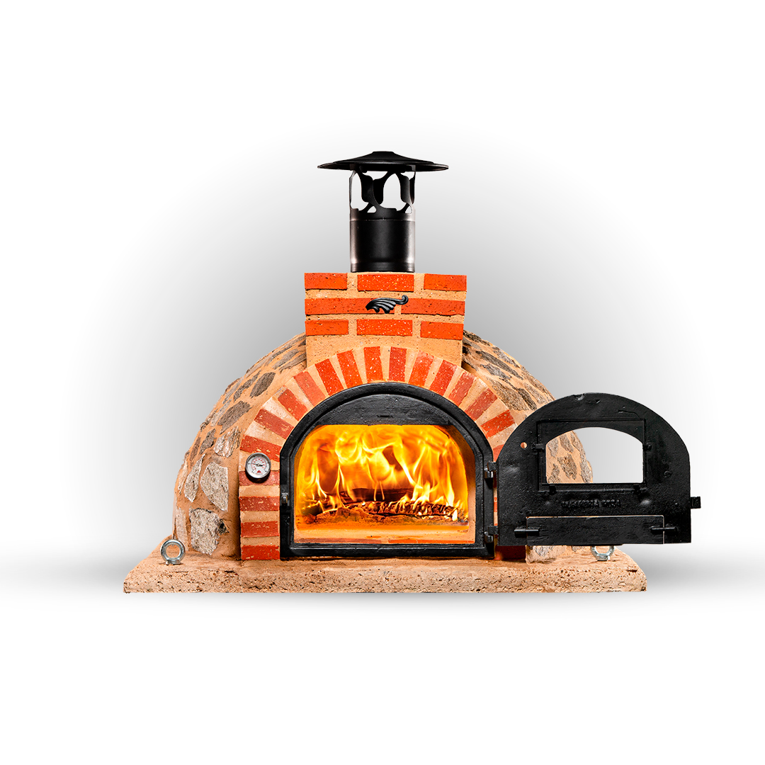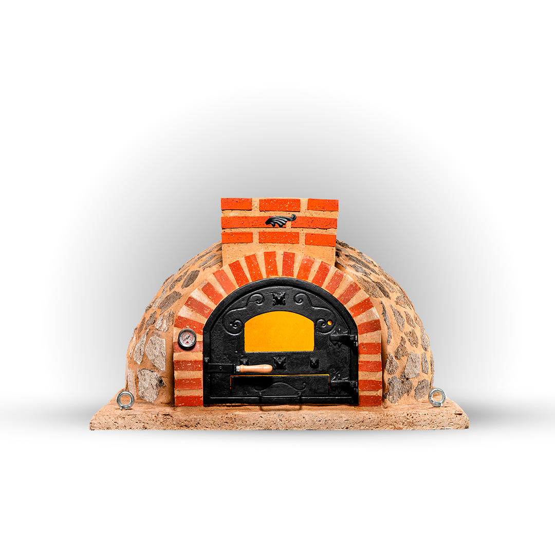 Refractory clay oven assembled in an artisan way with first quality materials and finished in granite stone of refined colors and well thought out aesthetics with an improved extra cast iron door.