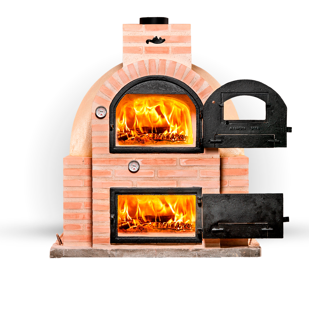 The different models change the aesthetics of the oven according to the door to be chosen, all of them with the burner made with round-shaped facing brick and the traditional oven finish.